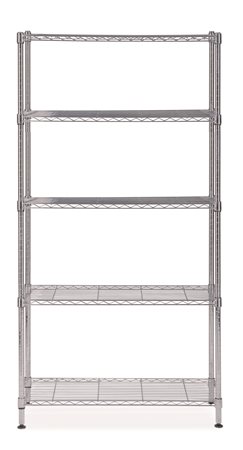 Többfunkciós króm polcrendszer a rendezett irodai környezet kialakításához.