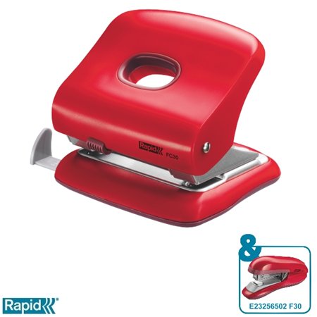 Lyukasztó, kétlyukú, 30 lap, RAPID "FC30", meggyvörös