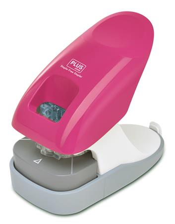 Kapocs nélküli tűzőgép, asztali, 10 lap, PLUS, rózsaszín