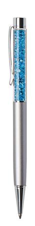 Golyóstoll, ezüst, felül aquakék SWAROVSKI® kristállyal töltve, 14 cm, ART CRYSTELLA®