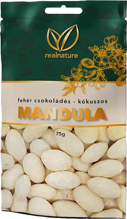 Mandula, 75 g, REAL NATURE, kókuszos-fehércsokoládés